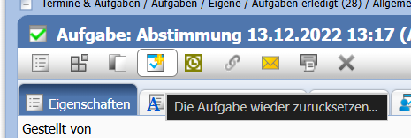 Beendete bzw. erledigte Aufgaben können bei Bedarf von ihrem Ersteller oder einem Mitglied mit der Rolle Organizermanager wieder zurückgesetzt, sprich aktiviert werden.