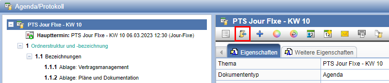Nach der Erstellung der Agenda bzw. des Protokolls steht es Ihnen für die weitere Bearbeitung zur Verfügung.