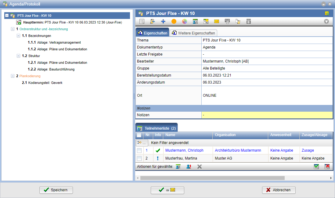 Teilnehmer können unabhängig vom Termin zum Protokoll hinzugefügt werden. Hierbei ist die Auswahl nicht auf PlanTeam-SPACE Nutzer beschränkt.