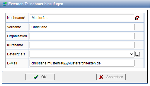 Externe Teilnehmer besitzen keinen Zugang zum Projekt und werden manuell hinzugefügt.