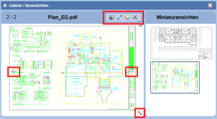 Für Dokumente und CAD-Dokumente im PDF-Format steht im PlanTeam-SPACE eine Voransicht zur Verfügung, welche zusätzlich die Möglichkeit des stufenlosen Zoomens bietet.
