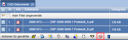 In der Tabelle CAD-Dokumente der Indizes lässt sich die Aktion