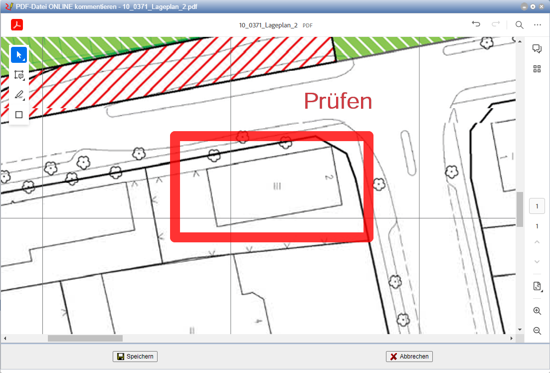 Der PlanTeam-SPACE ermöglicht die Bearbeitung und Kommentierung von PDF-Dokumenten direkt im Browser. Es können verschiedene Arten von Kommentaren wie Anmerkungen und Notizen hinzugefügt werden, um die Kommunikation zu erleichtern. Das Bearbeitungsfenster kann unabhängig vom PlanTeam-SPACE Fenster verschoben werden. Somit ist eine Bearbeitung auf einem zweiten Monitor möglich.