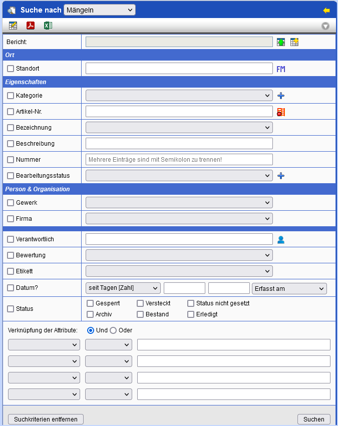 Tragen Sie die gewünschten Suchparameter ein und drücken