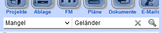 Mit Hilfe der Schnellsuch-Funktion lassen sich bereits indizierte Objekte einfach und komfortabel suchen. Um die Schnellsuche zu benutzen, wählen Sie in der Drop-Down-Liste das gewünschte Objekt und tragen daneben die Suchparameter ein.