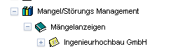 Wird der Baum in der Standardsicht dargestellt, werden Mängel und Störungen nach Kategorien getrennt aufgelistet. Nach