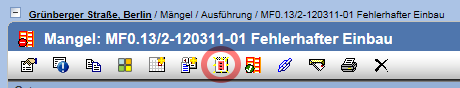 Um eine Mängelanzeige zu generieren, wählen Sie die Aktion in der Aktionsleiste auf