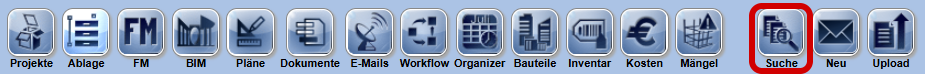 Die Suche wird über die Navigationsleiste oder das Kontextmenü geöffnet: